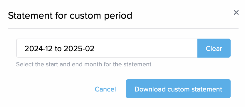 You can create a custom statement (selected date range) by using the "Generate Custom Statement" tool.