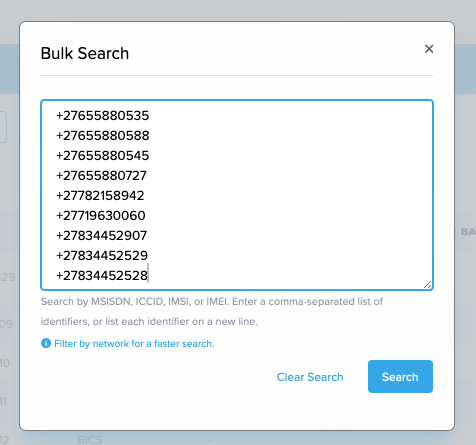 Copy and Paste the list of SIMs you would like to bulk suspend