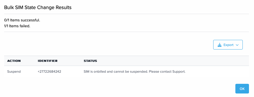 Tags: Delete SIM, Suspend SIM, Cancel SIM, Onbilled, On Billed, Contract