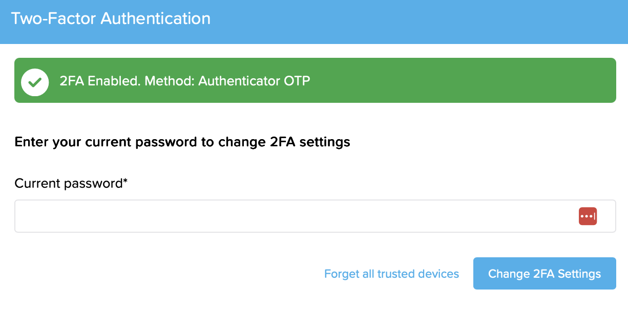 - Choose your preferred 2FA delivery method - Authenticator OTP is most secure and easiest to use.