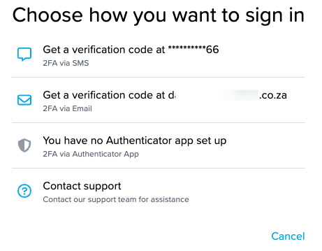 If you're experiencing issues with your current 2FA method while logging in, you can try using a different authentication method. You can find this option on the Two-Factor Authentication screen.