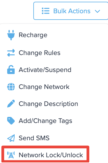 - Select SIMs to unlock. Under Bulk Actions, select "Network Lock/Unlock.