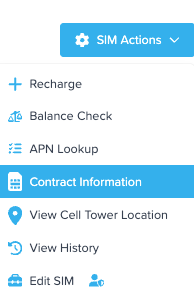 To view an on-billed SIM's contract details and contract term, use the "Contract Information" option under SIM Actions.